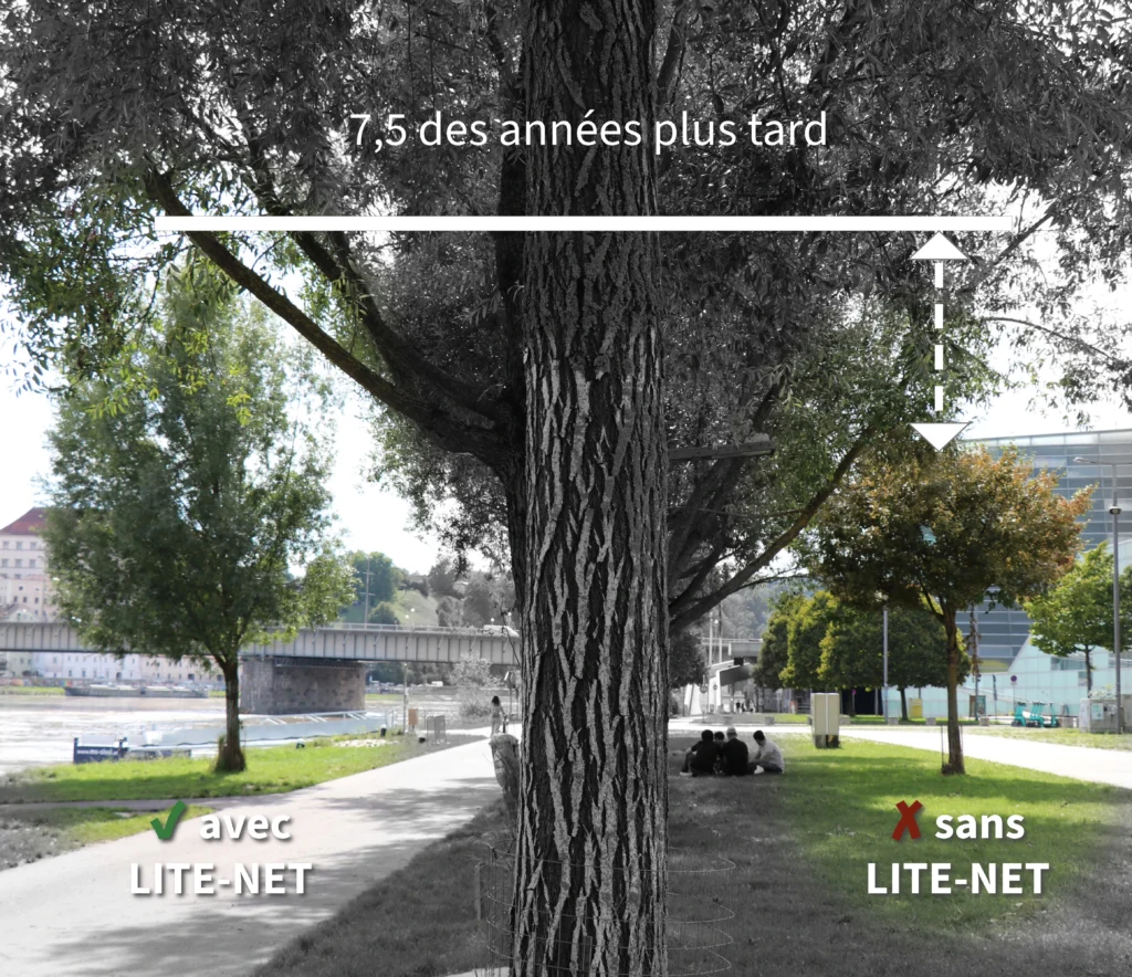 Avec les filets pour fosses d’arbres LITE-NET de grande surface, même les racines d’arbres déjà enracinés sont durablement alimentées en air & en eau.