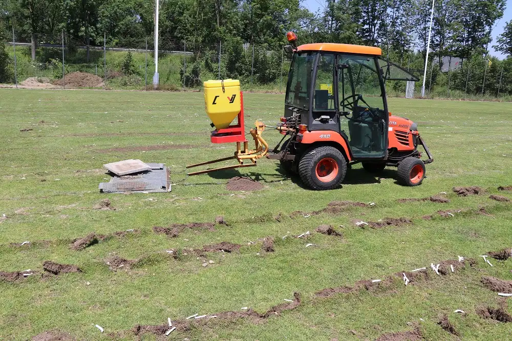 L’aerazione è un modo efficace per aerare il terreno e prevenire i ristagni d’acqua. Questo viene fatto di solito facendo dei buchi nel terreno con diversi tipi di punte (spoons) e riempiendoli di sabbia di quarzo. Lo svantaggio di questo metodo è la sua breve efficacia, poiché le cavità della sabbia quarzifera sono rapidamente riempite di nuovo dai fini del terreno.