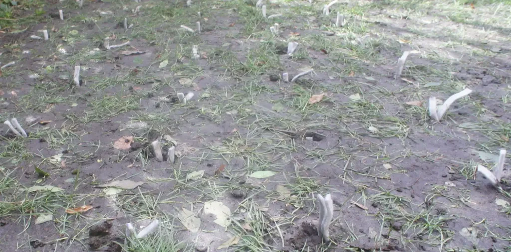 To drain the wet soil, punch holes through the impermeable soil layer at intervals of about 20-50 cm with a pipe, auger or steel rod about 12-15 mm thick. Then insert the long LITE-STRIPS into the holes like a drainage snorkel – done.