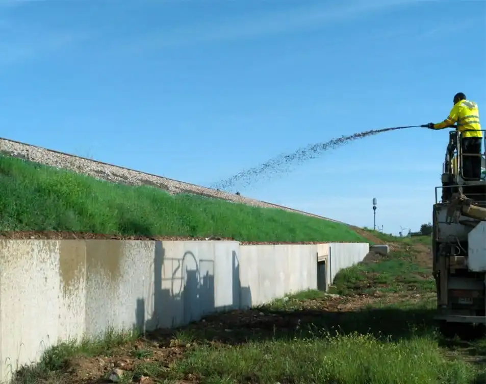 The mix for a sprinkler system typically consists of water, mulch, soil amendments, fertilizer, tackifier, and seed. As a new and improved mulch material, LITE-CUBES Bio1 can be mixed in and applied by hydroseeder.